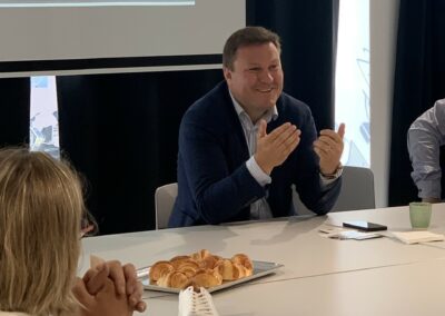 Mercredi 7 juin, Produit en Anjou a eu le plaisir d’accueillir dans ses locaux pour son traditionnel petit déjeuner de bienvenue, 10 nouvelles entreprises adhérentes en présence du Président de l’Association Produit en Anjou, Henri Mercier ainsi que la Présidente du GIP Produit en Anjou et du Département du Maine-et-Loire, Florence Dabin.